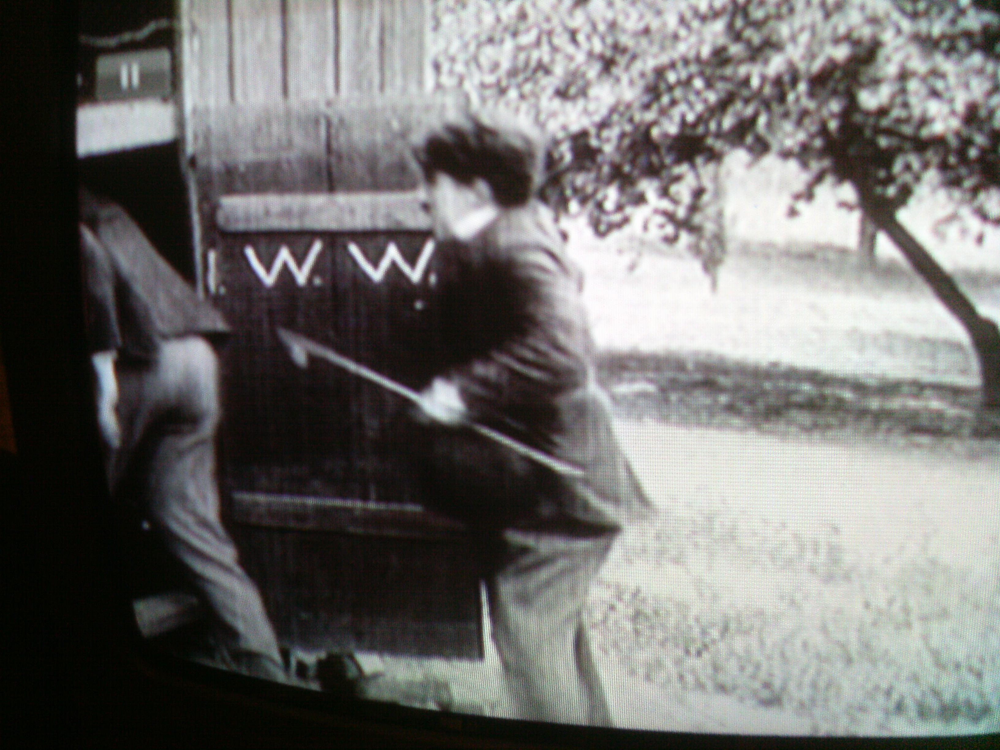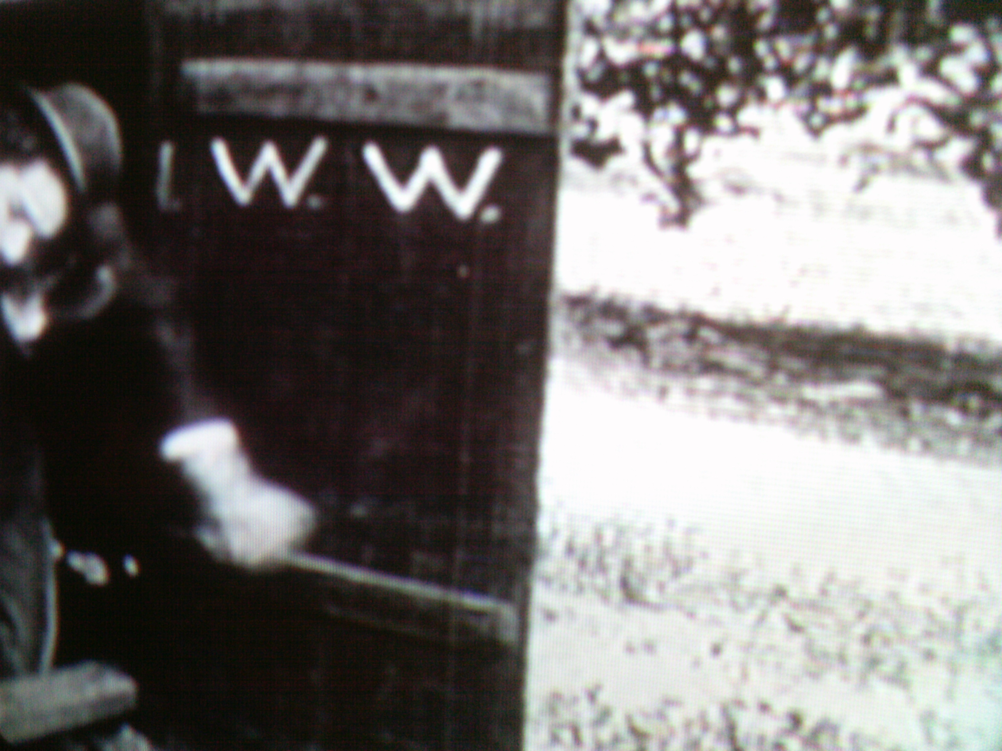 In the 1914 Charlie Chaplin comedy, The Fatal Mallet, the letters IWW are clearly written on the inside of this door.